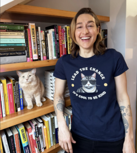 I was also delighted to rep Lead the Change‘s “It’s Cool to Be Kind” cat tee. NB: It was Assata’s first public appearance, and she stole the show!